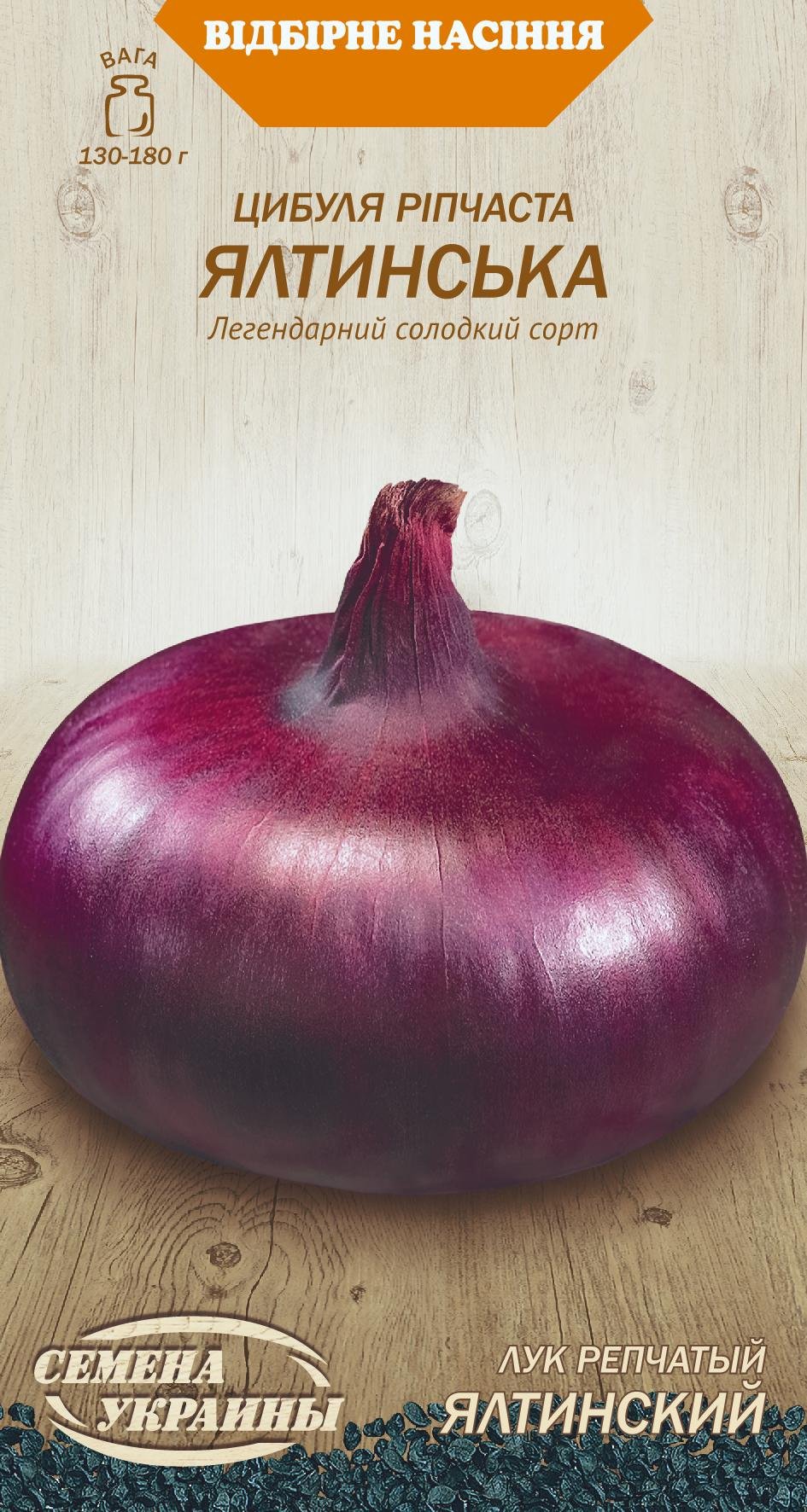Середньостиглий сорт. Період від сходів до стиглості 95-105 днів. Цибулини великі, плескатої форми, вагою 130-180г, солодкого смаку, фіолетового забарвлення луски. Без ГМО.