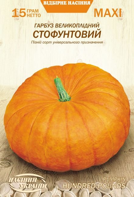 Пізньостиглий сорт. Період від сходів до початку стиглості 110-140 днів. Плоди великі, плоско-округлої форми, вагою 10-20кг, жовто-оранжевого забарвлення. М'якуш кремово-оранжевого кольору. Без ГМО.
