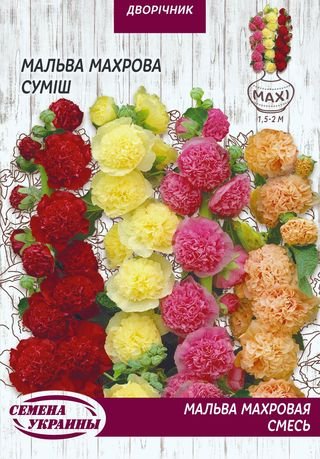 Дворічна рослина, з міцними прямостоячими стеблами, висотою 1,5-2м. Квітки махрові, великі, діаметром 8-12см, різноманітних забарвлень. Використовується для декоративного оформлення насаджень вздовж огорож, клумб, квітників та зрізу в букети.
