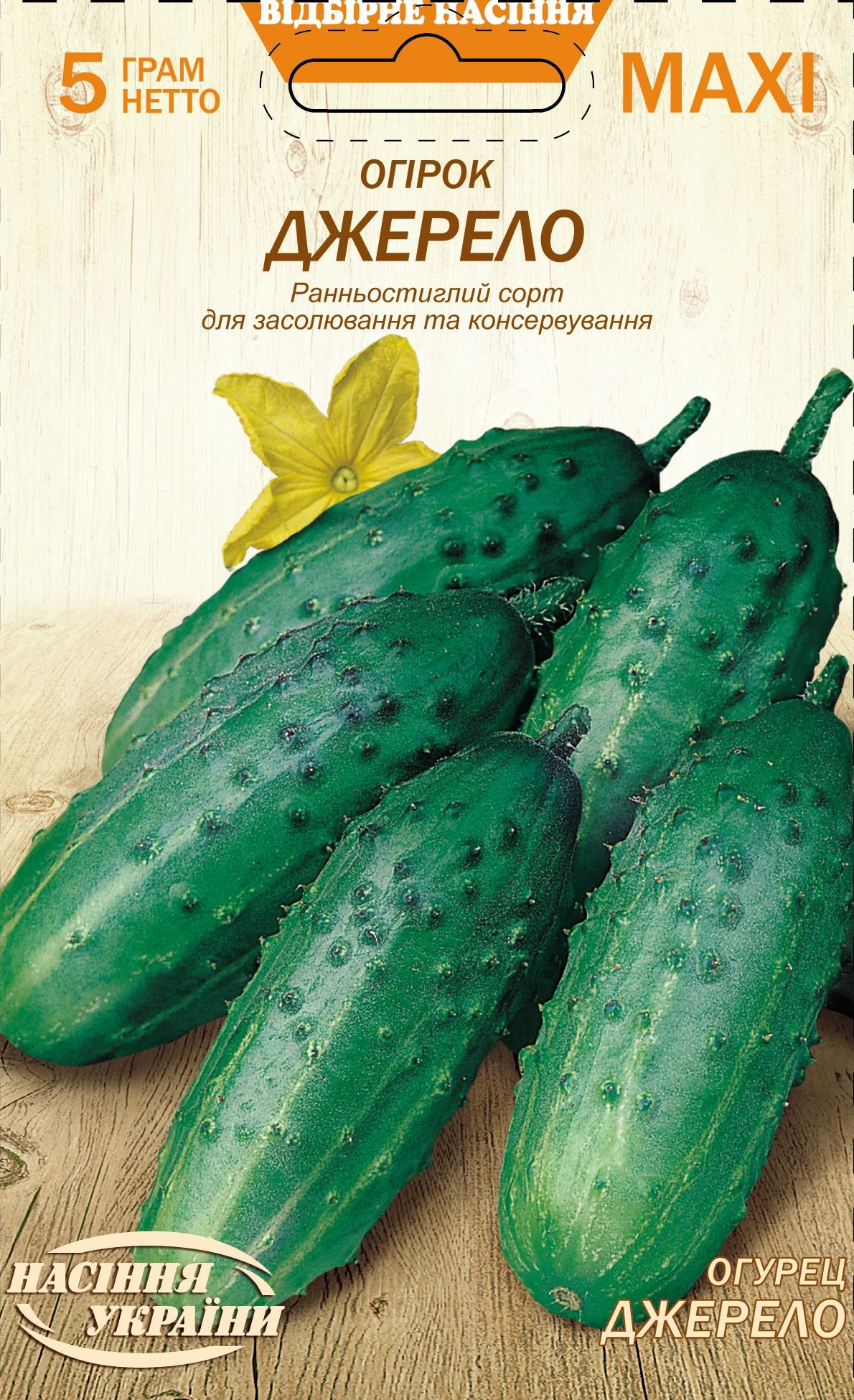 Ранньостиглий сорт. Період від сходів до початку стиглості 45-50 днів. Плоди невеликі, подовжено-овальної форми, крупнобугорчаті, вагою 80-90г, довжиною 10-12см, зеленого забарвлення зі світлими смугами. Без ГМО.