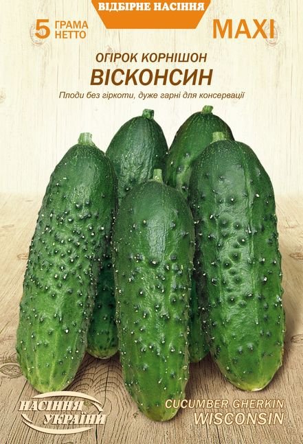 Ранньостиглий сорт. Період від сходів до початку стиглості 45-50 днів. Плоди невеликі, циліндричної форми, крупнобугорчаті, вагою 60-80г, довжиною 8-11см, зеленого забарвлення. Без ГМО.