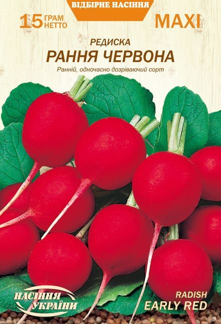 Ранньостиглий сорт. Період від сходів до стиглості 22-25 днів. Коренеплоди середнього розміру, округлої форми, діаметром 3-4см, вагою 20-25г, червоного забарвлення. Без ГМО.