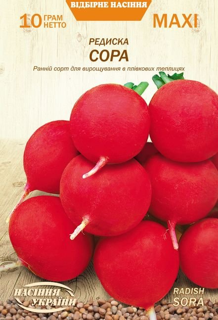 Ранньостиглий сорт. Період від сходів до стиглості 20-24 дні. Коренеплоди великі, округлої форми, діаметром 4-5см, масою 30-35г, яскраво-червоного кольору. Без ГМО.