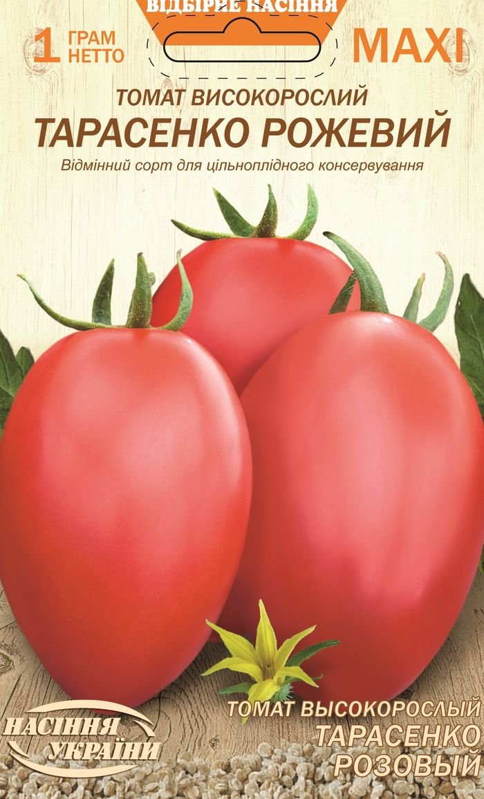 Середньостиглий сорт. Період від сходів до початку стиглості 110-120 днів. Кущ високорослий, у відкритому ґрунті 120-150см. Плоди невеликі, овальної форми з носиком, вагою 80-100г, рожевого забарвлення. Без ГМО.