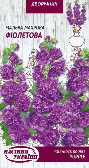 Дворічна рослина, з міцними прямостоячими стеблами, висотою 1,5-2м. Квітки махрові, великі, діаметром 8-12см, фіолетового забарвлення. Використовується для декоративного оформлення насаджень вздовж огорож, клумб, квітників та зрізу в букети.