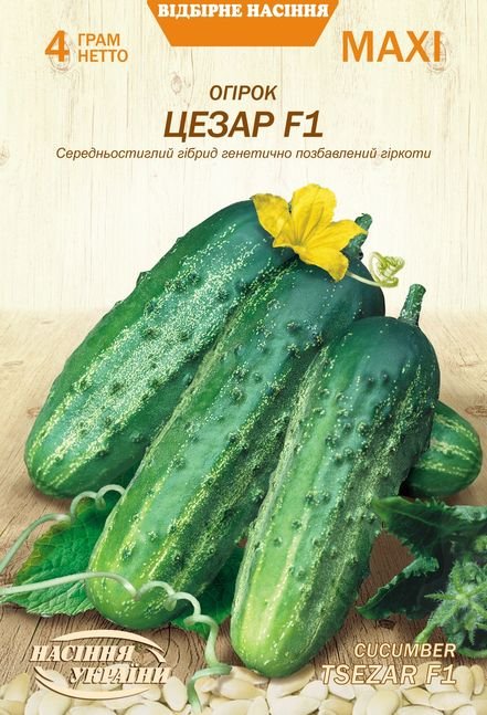 Середньостиглий гібрид. Період від сходів до початку стиглості 50-55 днів. Плоди середнього розміру, циліндричної форми, крупнобугорчаті, довжиною 8-12см, вагою 70-120г, темно-зеленого забарвлення зі світлими смугами. Без ГМО.
