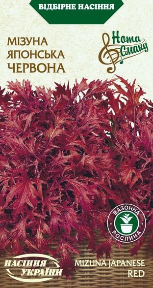 Однорічна рослина. Період від сходів до збору зелені 30-40 днів. Формує рослини висотою 30-40см. Листки пір'ясто-розсічені, червоно-фіолетового забарвлення, яблучно-гірчичного смаку. У домашніх умовах вирощується цілий рік. Без ГМО.