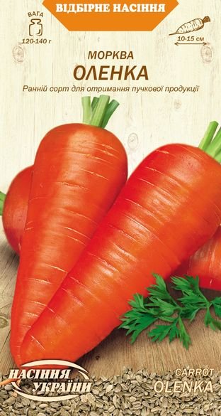 Ранньостиглий сорт. Період від сходів до технічної стиглості 85-100 днів, пучкової - 45-55 днів. Коренеплоди невеликі, конічної форми з тупим кінчиком, довжиною 10-15см, вагою 120-140г, оранжево-червоного забарвлення. Без ГМО.
