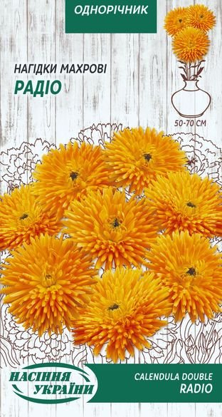 Однорічна рослина з міцними прямостоячими стеблами, висотою 50-70см. Квітки хризантемоподібні, діаметром 5-7см, темно-оранжевого забарвлення. Використовується для оформлення групових та одиночних насаджень, клумб, квітників та зрізу в букети.