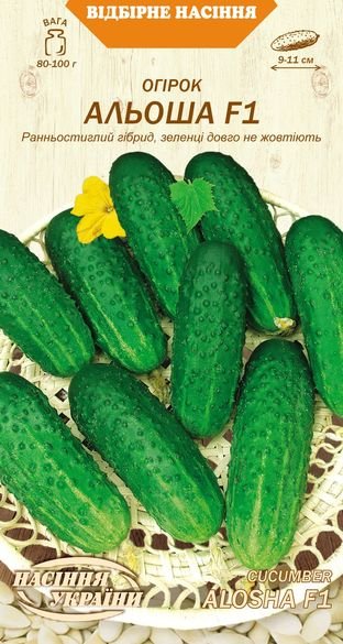 Ранньостиглий гібрид. Період від сходів до початку стиглості 40-45 днів. Плоди невеликі, циліндричної форми, крупнобугорчаті, довжиною 9-11см, вагою 80-100г, інтенсивно-зеленого забарвлення. Без ГМО.