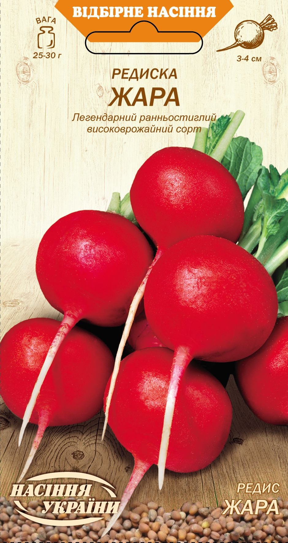 Ранньостиглий сорт. Період від сходів до стиглості 22-26 днів. Коренеплоди середнього розміру, округлої форми, діаметром 3-4см, масою 25-30г, малиново-червоного кольору. Без ГМО.