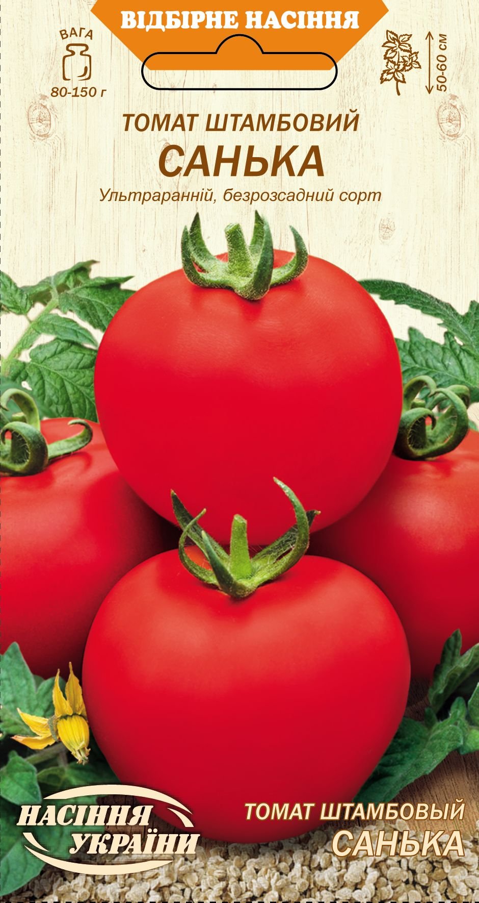 Ультраранній сорт. Період від сходів до початку дозрівання 80-90 днів. Кущ штамбовий, низькорослий, висотою 50-60см. Плоди невеликі, округлої форми, масою 80-150г, насиченого червоного забарвлення. Без ГМО.